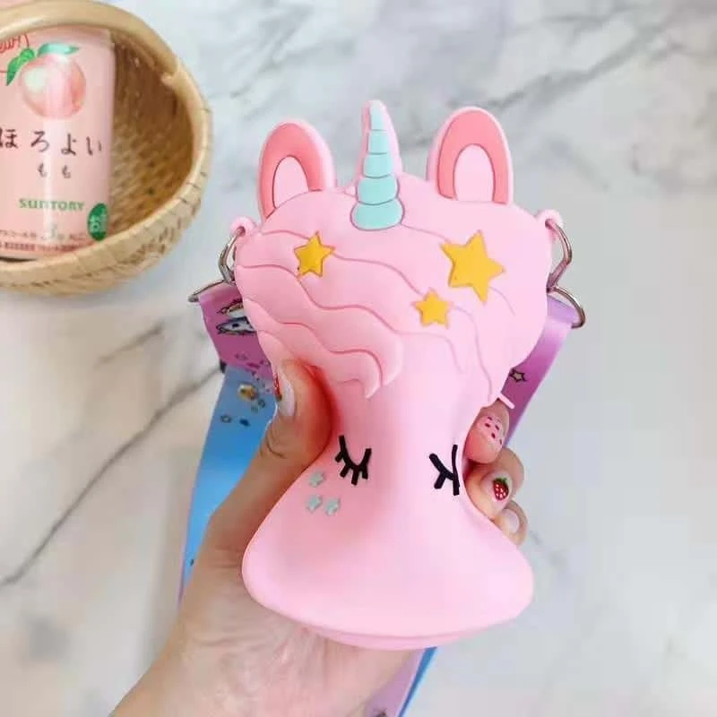 Feel unique with this adorable unicorn purse! From the soft sillicone dreaming unicorn face and long adjustable strap–this purse is sure to be a Favourite!