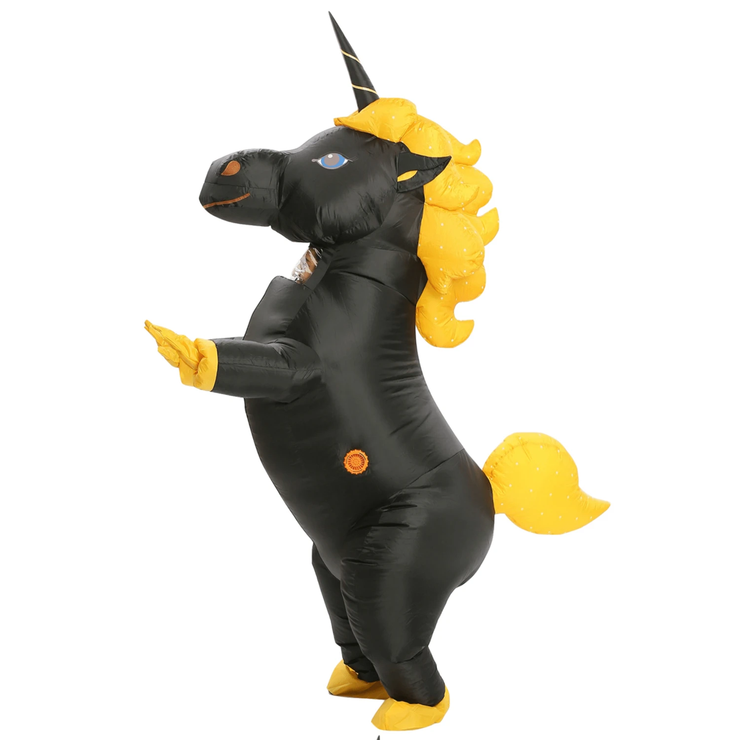 - Black Unicorn Inflatable costume with a colorful tail suit for adult height 150cm-190cm