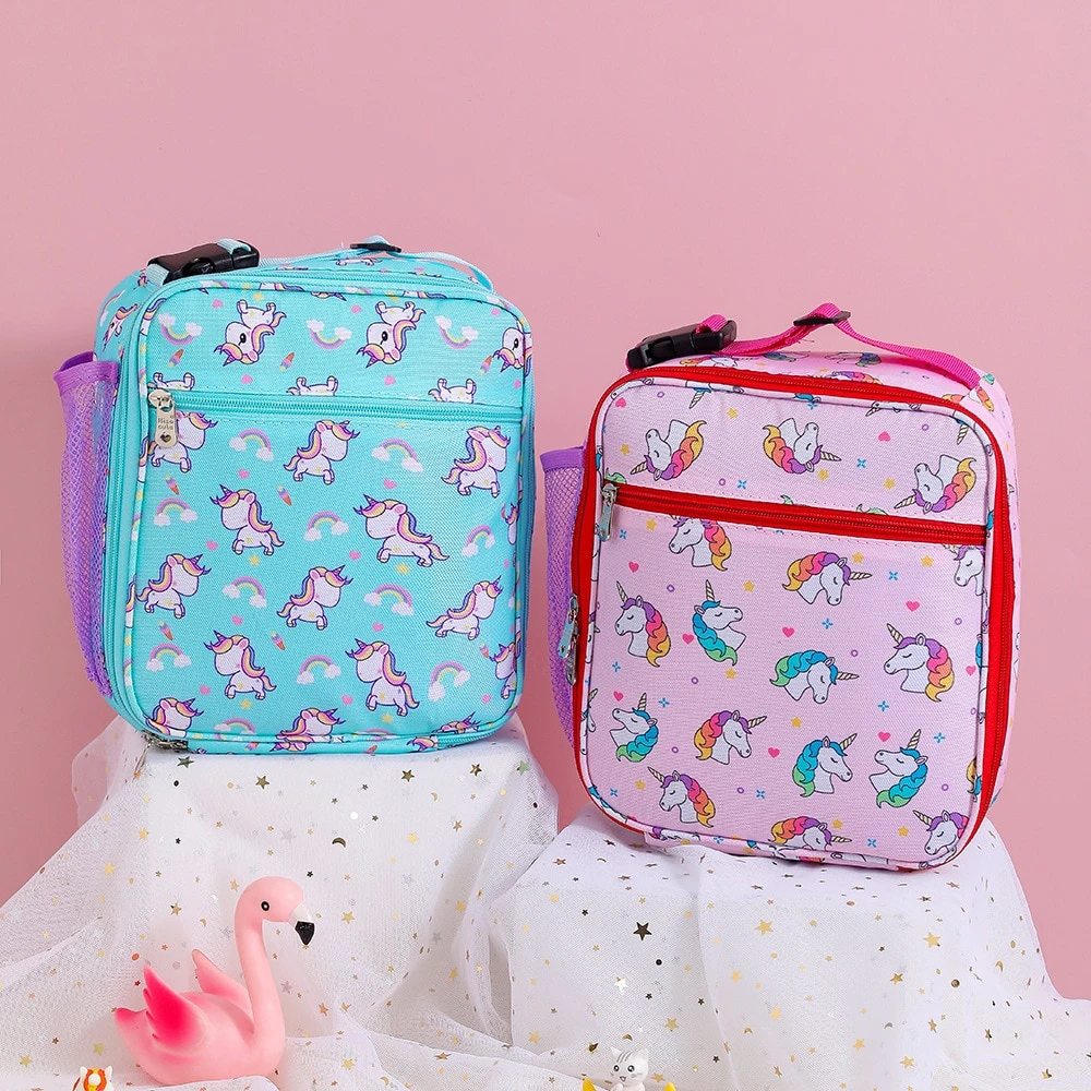 Specially Designed for Children – Large zippers and a wide opening make it easier for little kids to manage mealtime on their own; Choose between a traditional fabric handle or an adjustable buckle handle (allowing the lunch bag to be clipped to the outside of your child’s backpack); The name tag attached to the inner wall allows your little one to easily find her lovely “unicorn”.