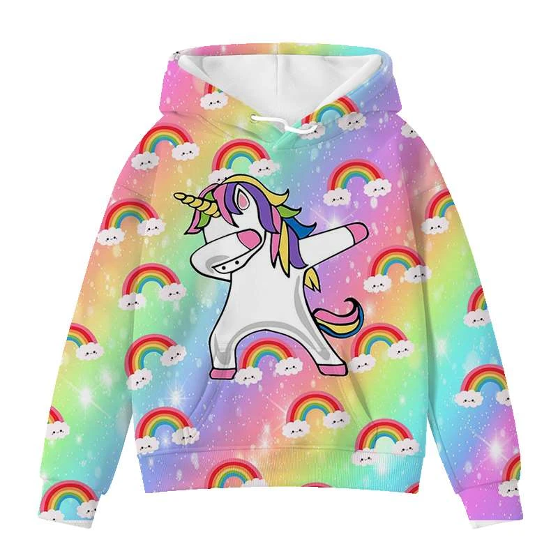- 🧥Practical Hoodies With Pockets – The colorful unicorn pullover is designed with a 3D hat, rainbow zipper, 2 big pockets. The 3D hat will make your girls cuter, the big pockets can prevent your hands from coldness or carry much stuff they want. The zipper is like a rainbow when it is pulled up. What an attraction!