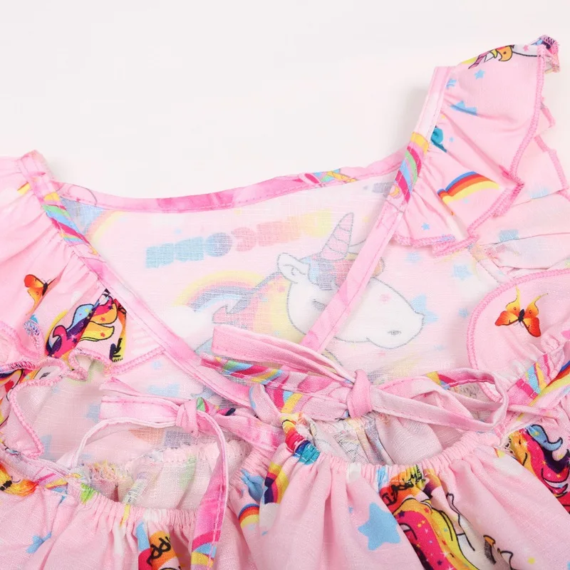 - Loverly unicorn pattern and butterflies are on the dress. You girls must like the cute unicorn dress. The flounce sleeve design is elegant and delicate.