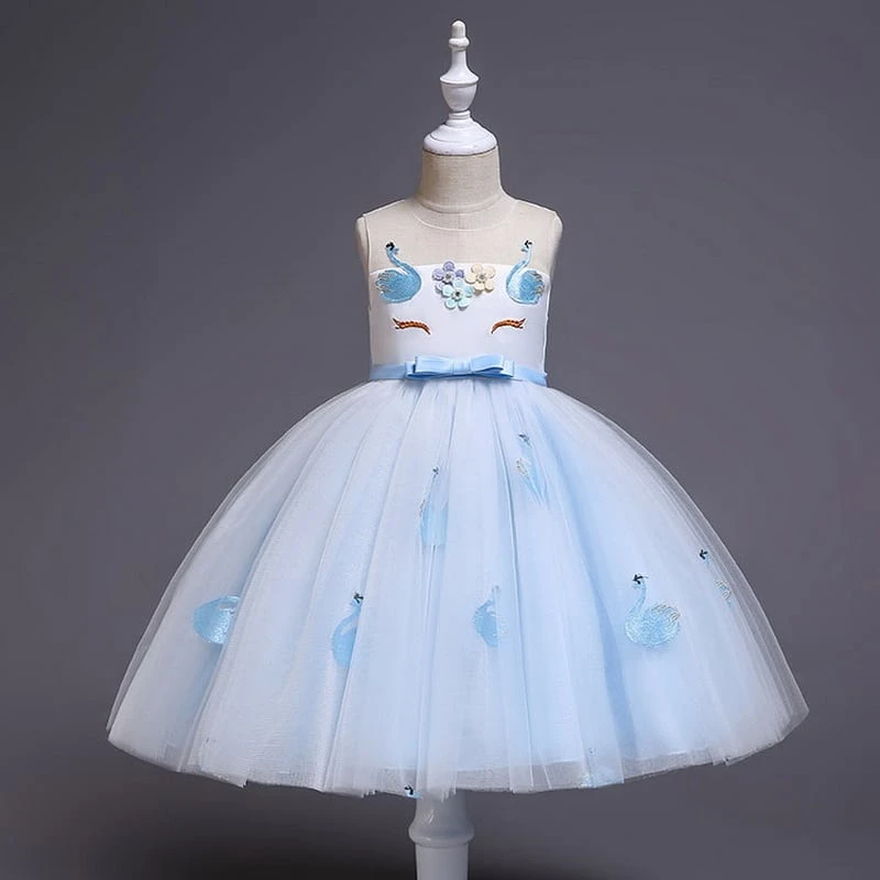 - COMPLETE SET: Unicorn Girls dress costume, toddler kids sleeveless round neck tulle spliced princess dress, match with a unicorn headband, 2pcs set. Your little girls will look absolutely adorable in this fashion unicorn tutu dress costume. Great for a birthday party, carnival, festival role play, smash cake or daily wear