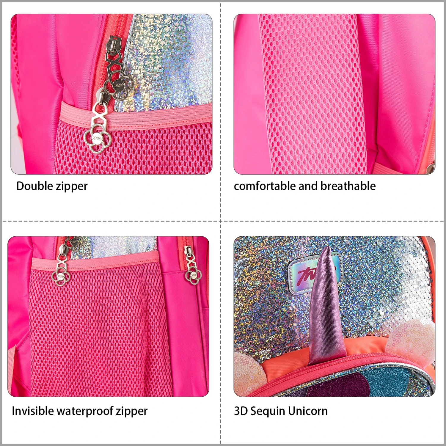 - Mesh Water Bottle Pocket on Both Sides. Material 100%Polyester. Water Resistant, Glitter Sequins