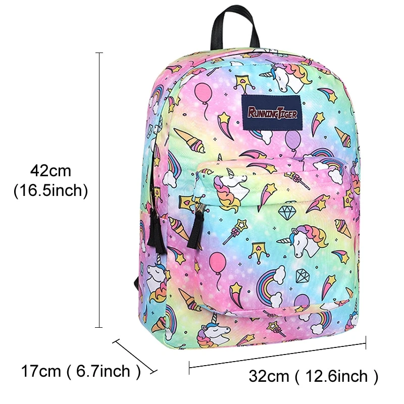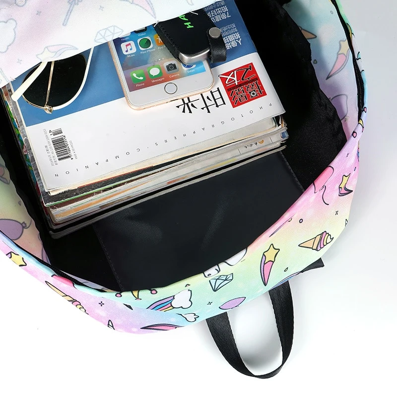 The Rainbow Unicorn Backpack fell from a Rainbow on a sunny day. The Unicorn dropped its Backpack during its descent to earth.