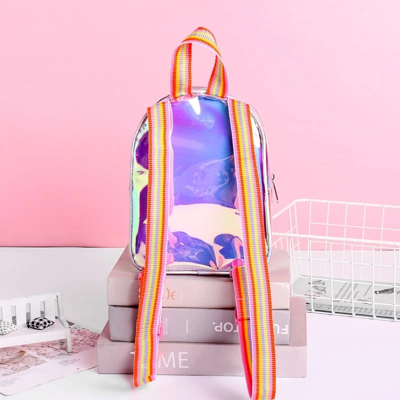 - Crafted from a durable holographic silver vegan leather material with cute metallic designed unicorn and colorful sequin pocket