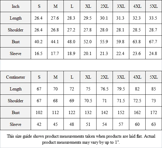 inch XS S M L XL 2XL 3XL 4XL 5XL