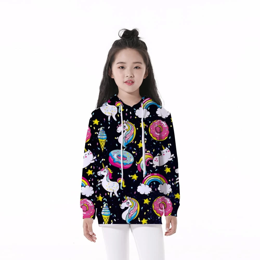 Drawstring hood, long cuffed ribbed sleeves, front kangaroo pocket and pull on closure