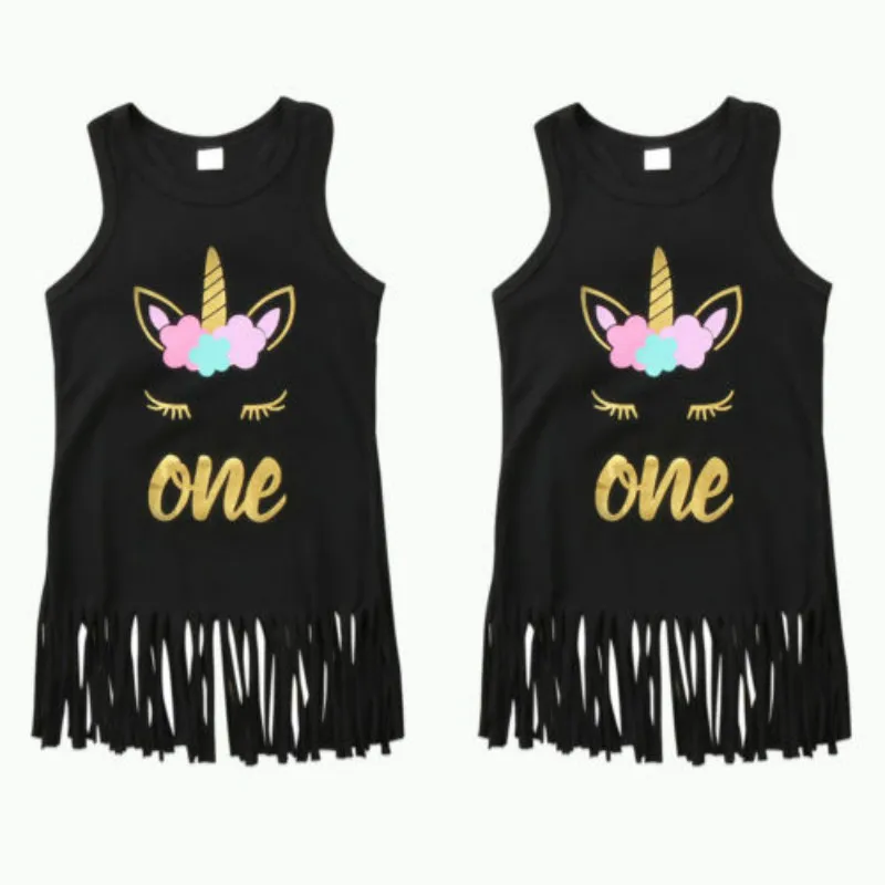 - Newest Fashion Kids Girls UNICORN Tassel Dress !!
