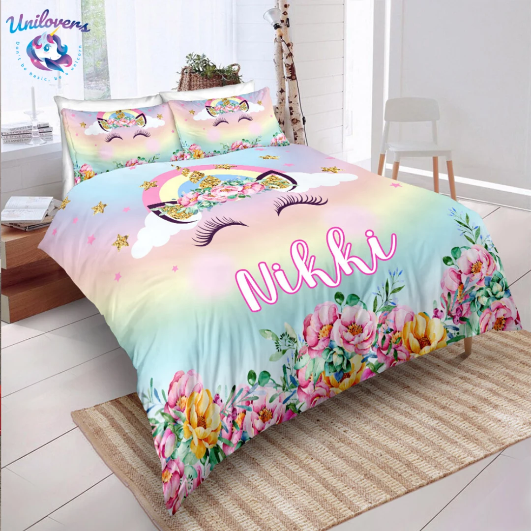 - This magical and colorful bedding set can be the center of a girl’s bedroom with its beautiful pattern