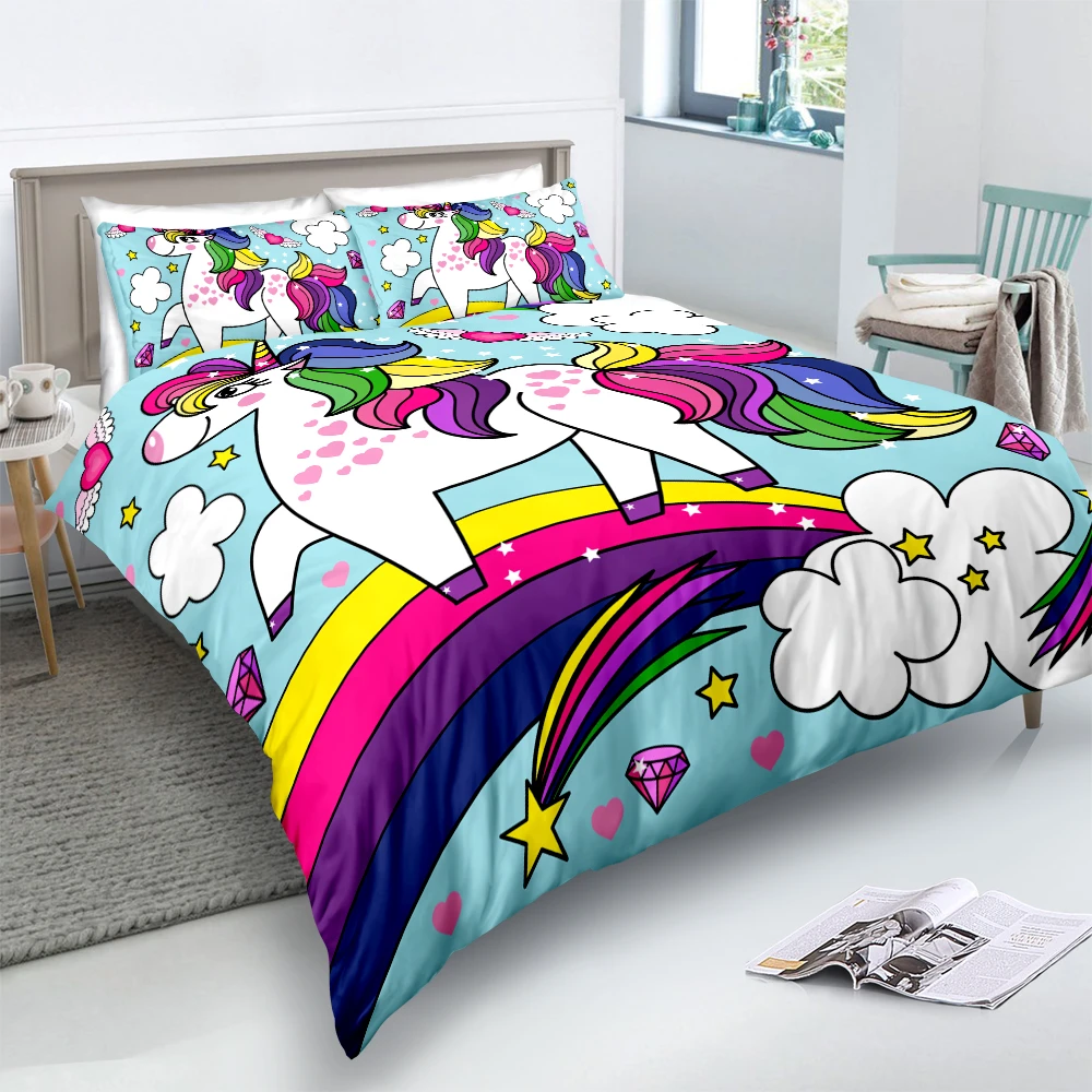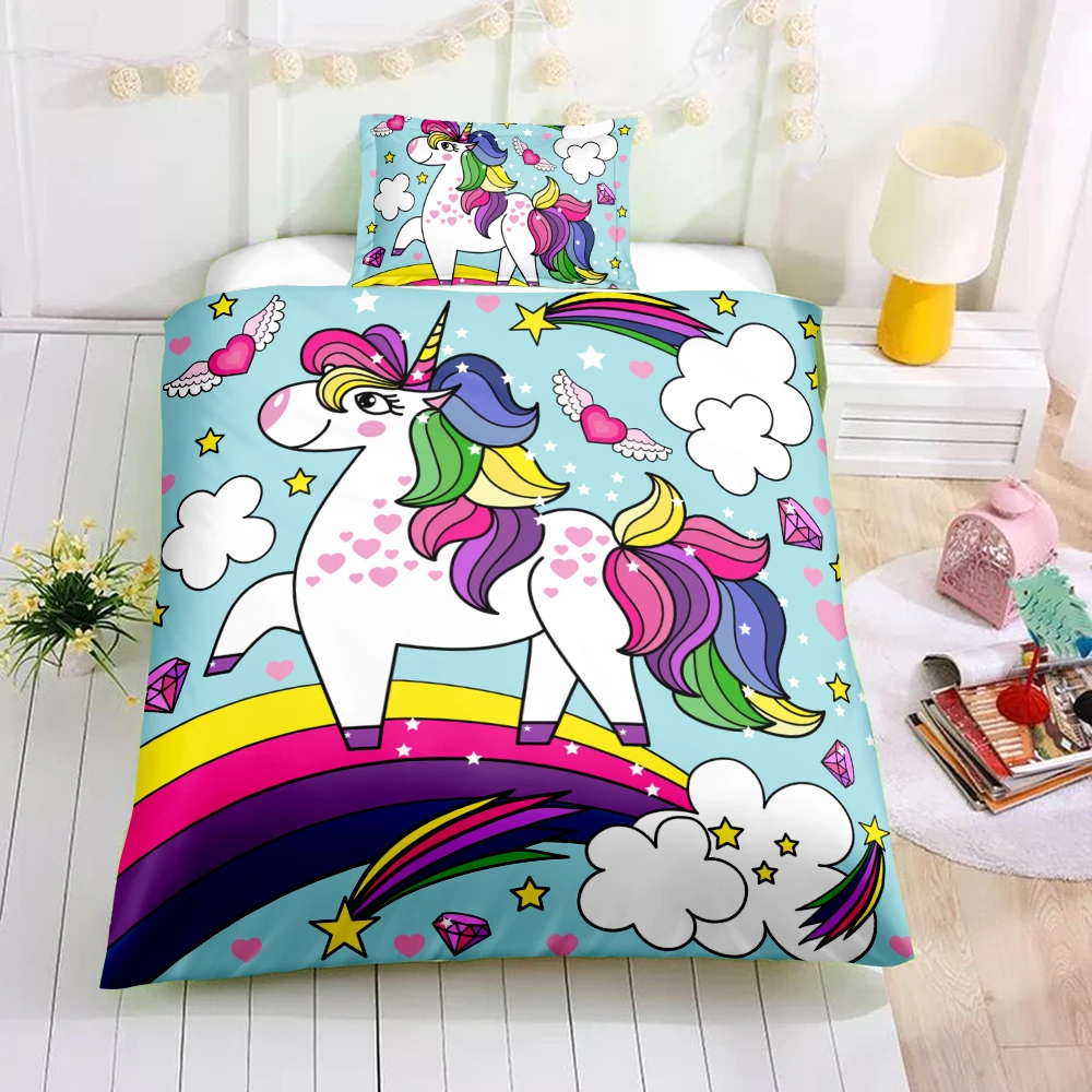 • CONVENIENT: Unicorn Bedding Set stay on the duvet and function like sheets — they absorb moisture and dirt, protecting the duvet itself so you can strip just the cover off and wash it.