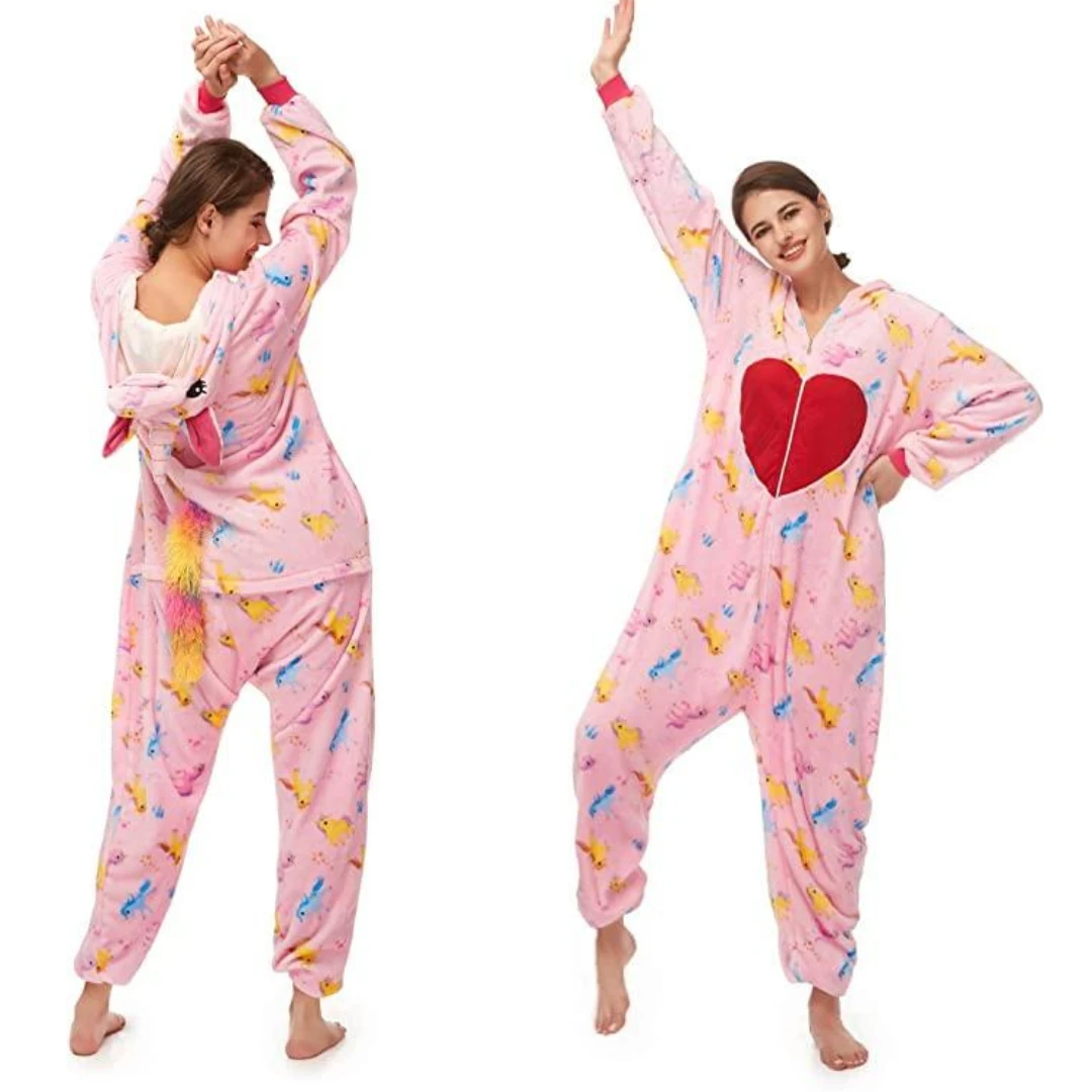 - DETAILS – The adorable and eye-catching animal one-piece designs all feature a hood with eyes, teeth, and nose for full effect. Matching tails and chest designs help complete your ultimate cosplay look! Match with a pair of animal slippers (not included) for your next pajama party.