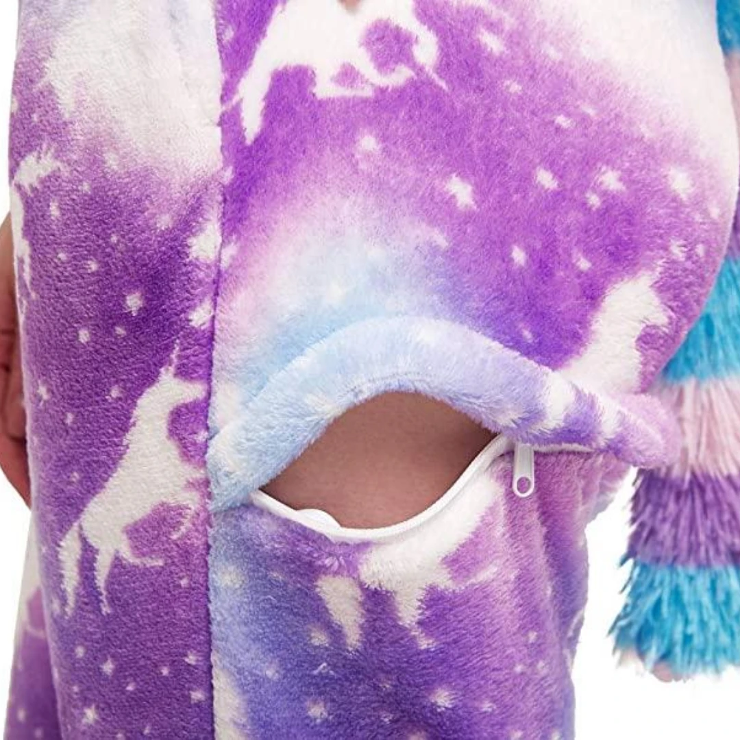 - COZY – A special blend of comfort and fun, these plush materials are soft to the touch and will keep you warm during those cold winter months. The button-up closure allows you to quickly get dressed while the loose fit gives you the flexibility to easily wear over your existing clothes or jacket.