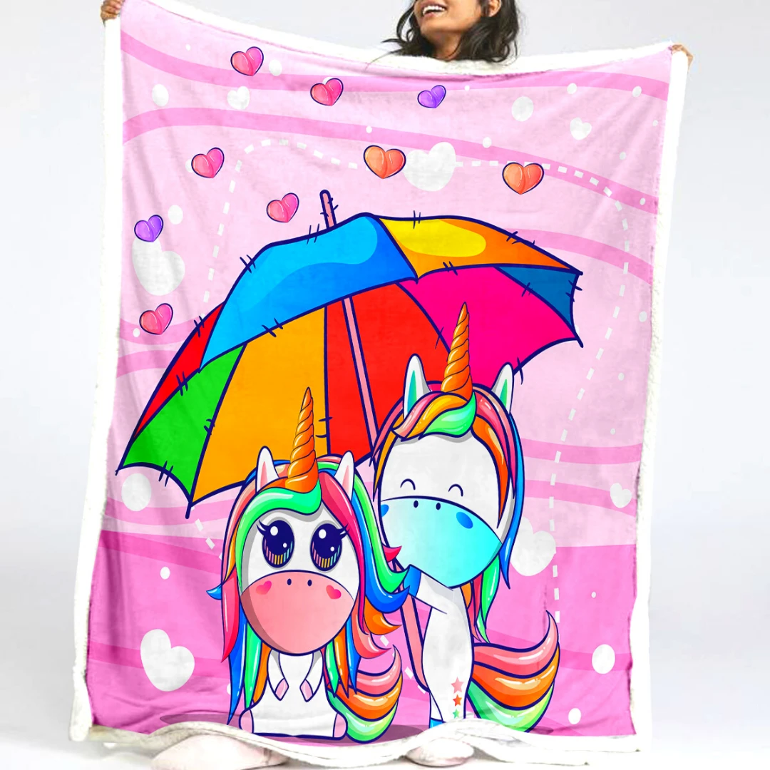 Rainbow Kids Unicorn Sherpa Fleece Blanket