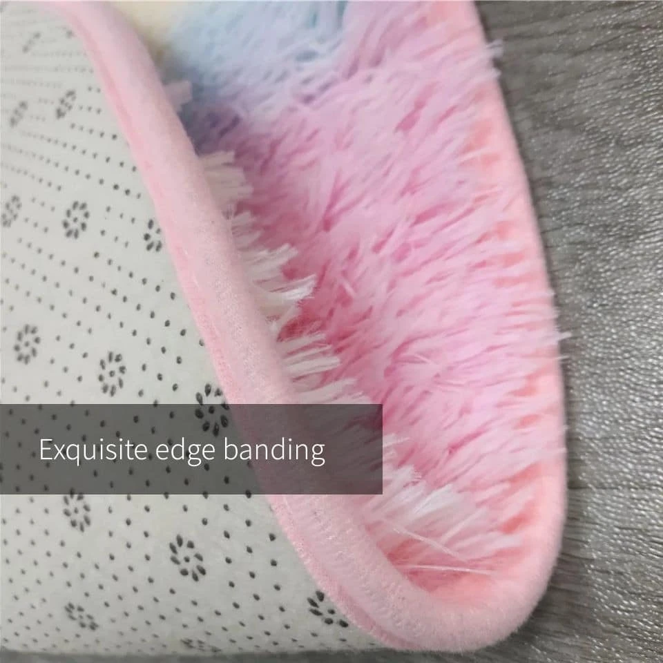 - Thousands of Non-Slip Dots: Our fluffy rug is back with thousands of emulsion non slip grip dots that help hold in place on wooden or other materials floor, and hold up even with kids and pets. This fluffy carpet is a great decor for the kids bedroom, nursery, classroom and dorm