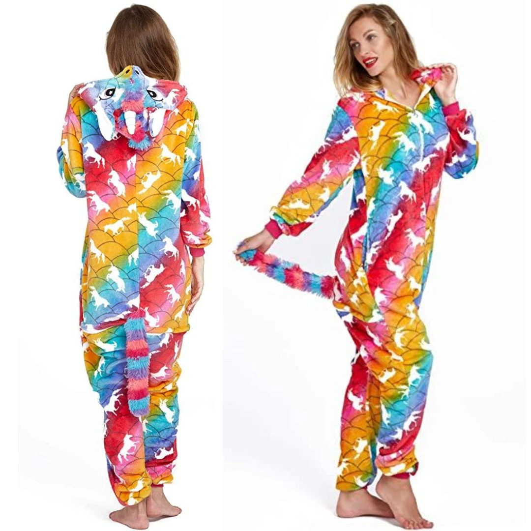 - DETAILS – The adorable and eye-catching animal one-piece designs all feature a hood with eyes, teeth, and nose for full effect. Matching tails and chest designs help complete your ultimate cosplay look! Match with a pair of animal slippers (not included) for your next pajama party.