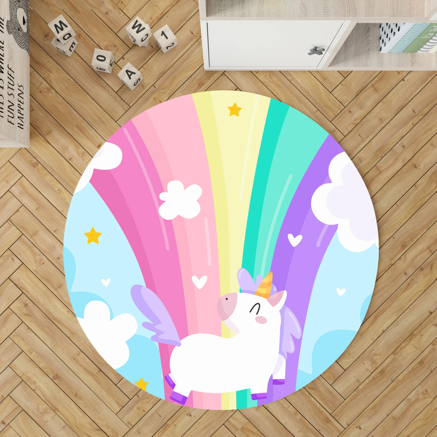 Magical Unicorn SW2048 Round Carpet, Cute Kids Playroom Mat, Bedroom Circle Rug