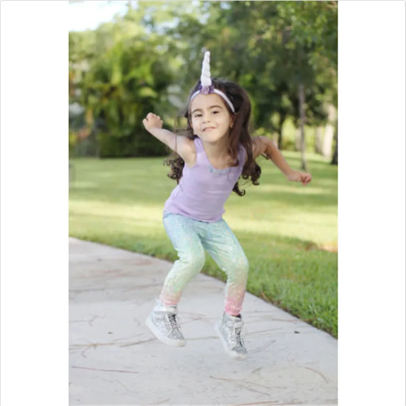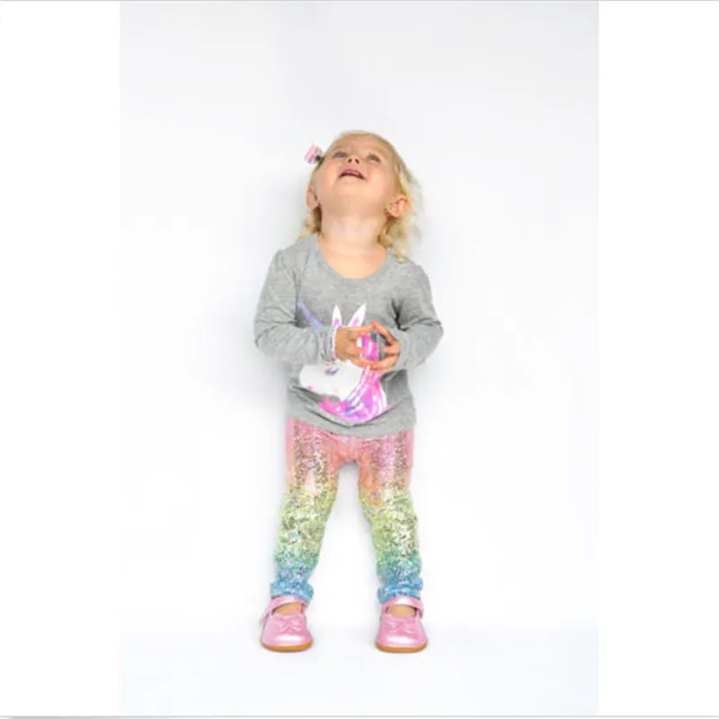 - Top current design, sweet leggings with bling sequin gradients. Colourful sequin style makes your girls cute and fashion.