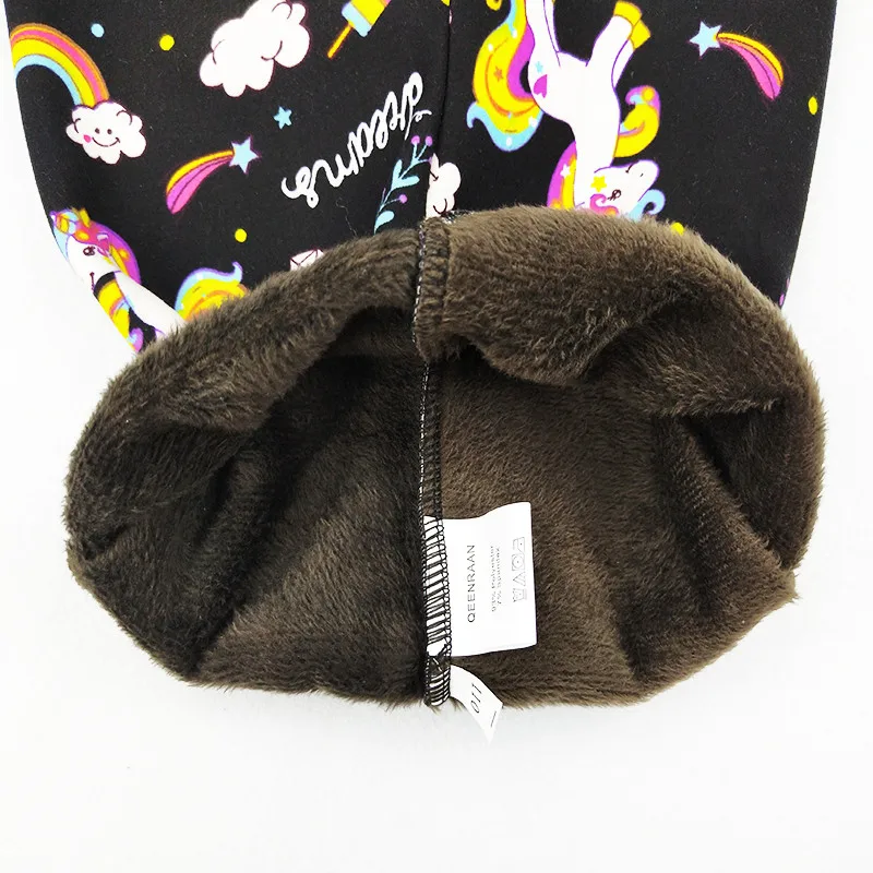 - Girls winter thick warm long pants printing fleece lined leggings. The soft fleece lining has a warm fuzzy feel to keep the child warm & comfy throughout the cold months