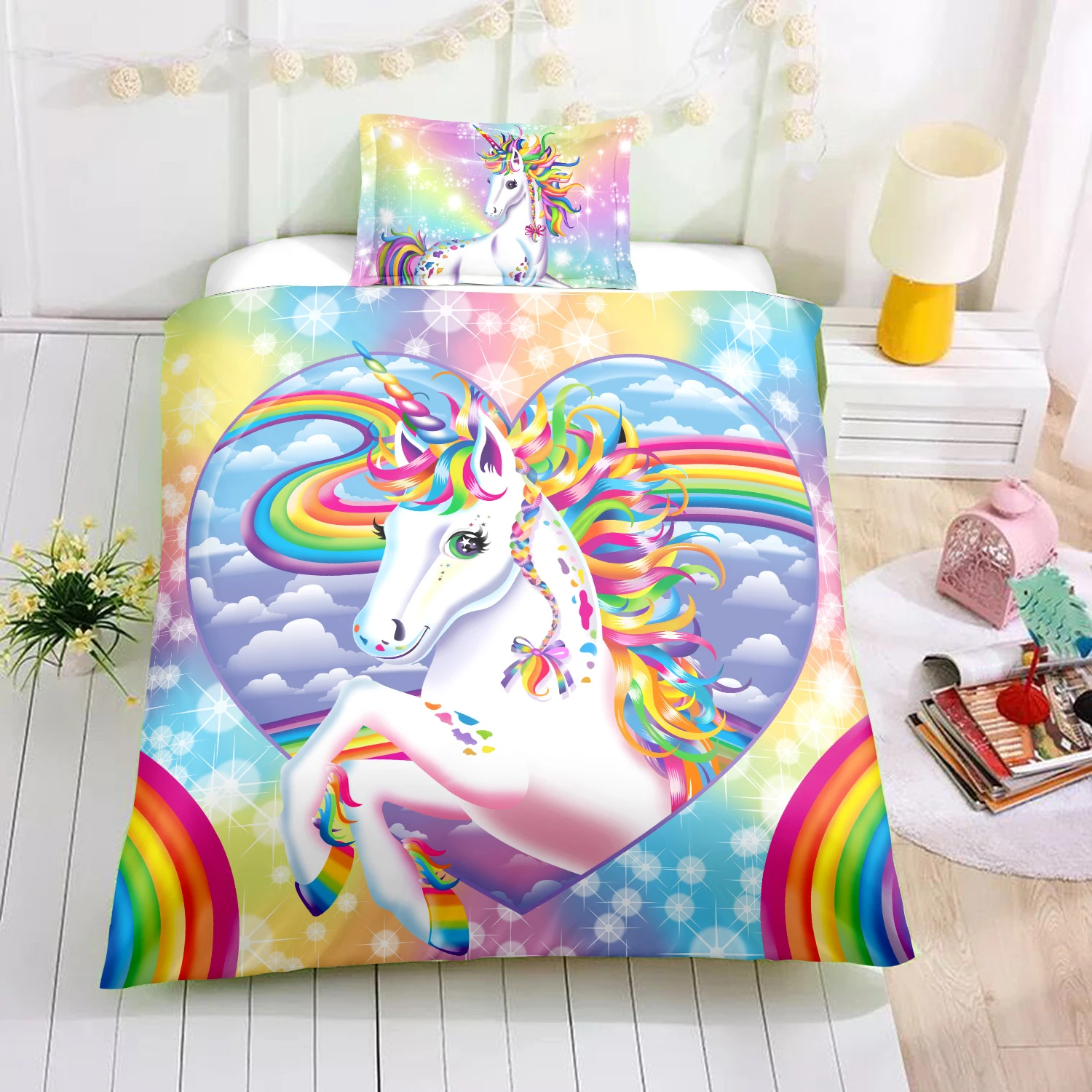 - CONVENIENT: Twin Unicorn Bedding Set stay on the duvet and function like sheets — they absorb moisture and dirt, protecting the duvet itself so you can strip just the cover off and wash it.