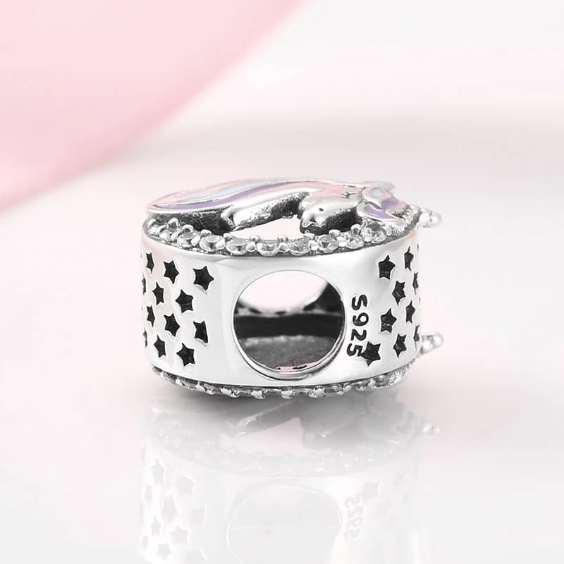925 Sterling Silver Adorable Unicorn Blue And White Enamel Bead