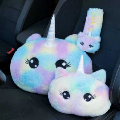 Rainbow Tie-dye Unicorn Car Headrest & Seat Belt Fluffy Pillow