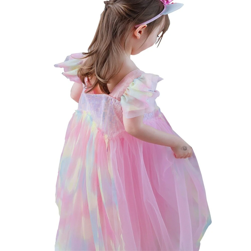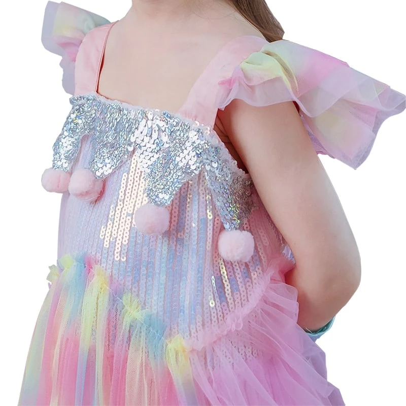 - The girl’s unicorn dress is cute and exquisite, illusion neckline, multi-layer tulle skirt, pretty design with permeability and drape, your little angel will be best beautiful and attractive.