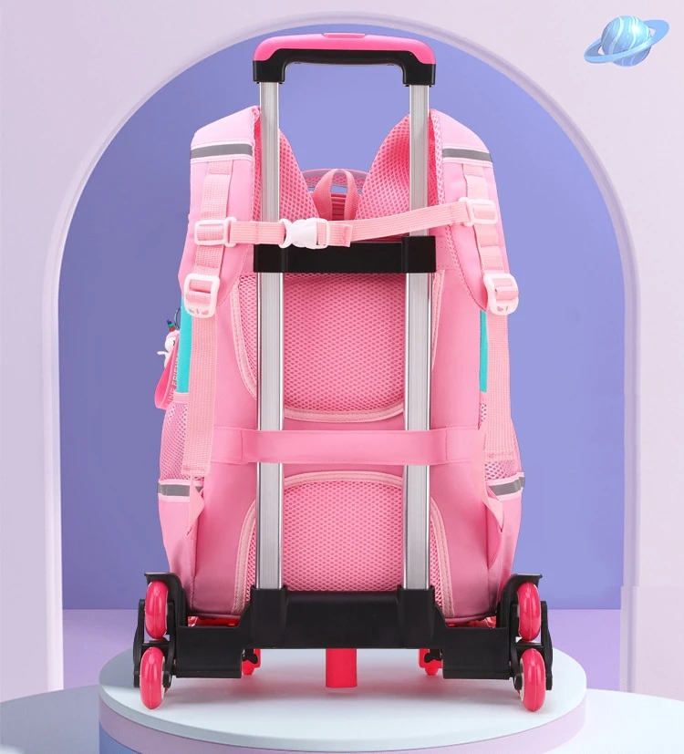 - Unicorn school bags details: Noiseless 4 wheels design with high-strength aluminum alloy rod, front pocket adopt EVA material.