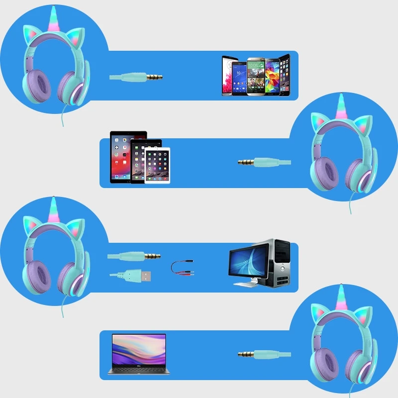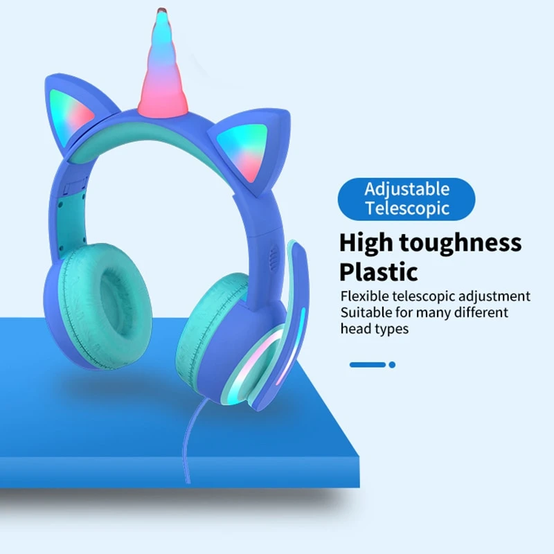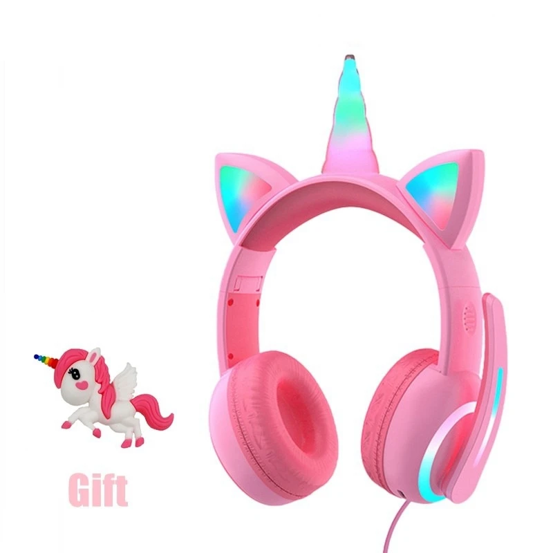 Unicorn Wired Headphones Controllable RGB light Headset with Noise Reduction Mic Adjustable Children’s Casco Kids Birthday Gift