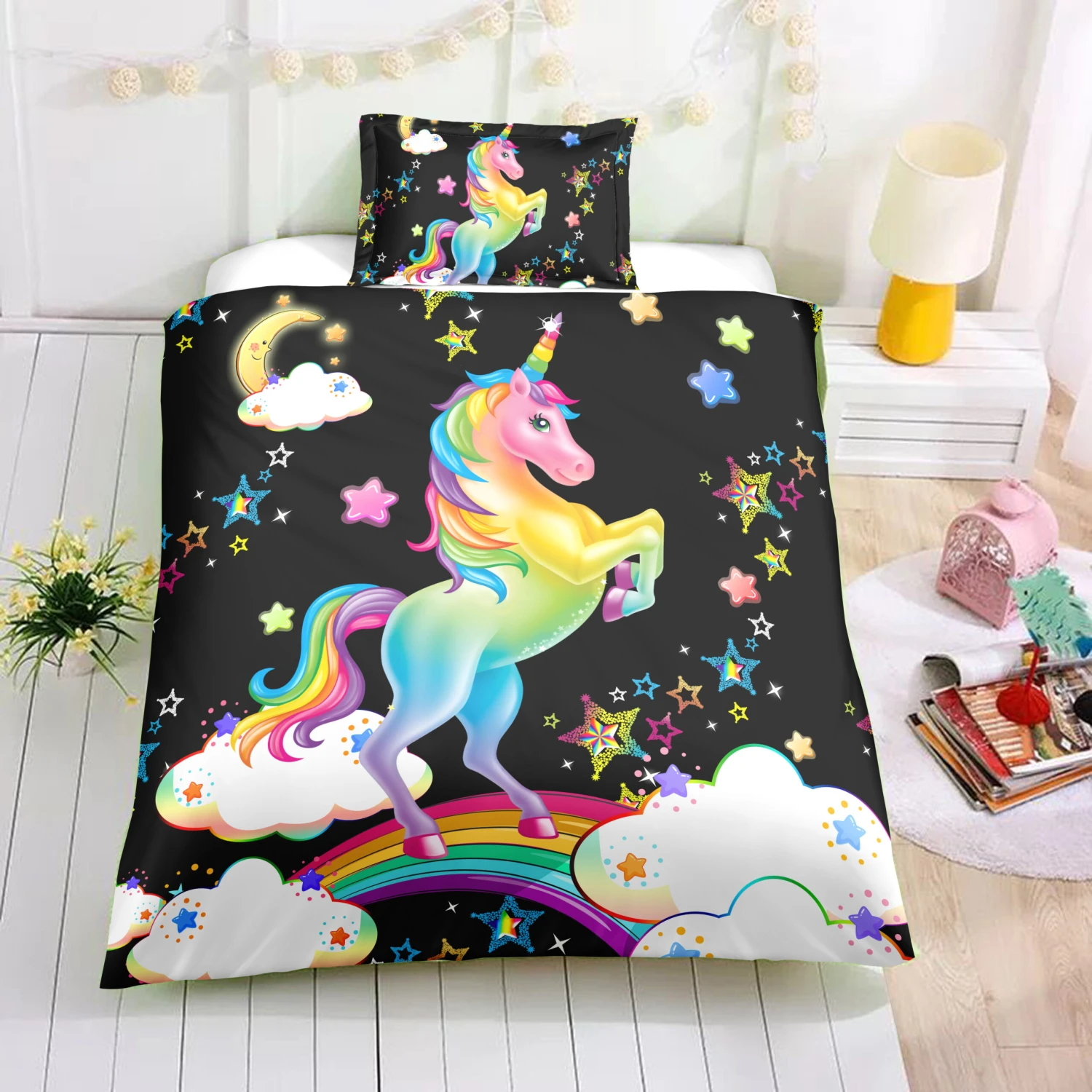 Unicorn With Clouds And Stars Bedding Set -Unicorn Fashion Unicorn with Clouds and Stars Bedding Set Twin
